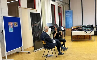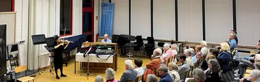 Von einem großen Traum, einer wegweisenden Fernseh-Doku und Karate hörten rund 40 Mitglieder des Vereins der Freunde und Förderer der Neuen Philharmonie Westfalen Mitte Oktober im Recklinghäuser Depot. Das Orchester hatte gemeinsam mit dem Förderverein zum ersten „Meet & Greet“ der neuen Saison eingeladen. Zu Gast war NPW-Geigerin Sayaka Nakajima, Mitglied der 2. Violinen, die den Zuhörenden neben Geschichten aus ihrem Leben reichlich Musik mitbrachte. Gemeinsam mit GMD Rasmus Baumann am Klavier präsentierte Nakajima Werke quer durchs Geigenreperoire – von Bach über Sarasate bis hin zu Edward Elgar.
