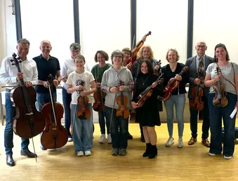 Musikbegeisterte aus der Region versammelten sich am vergangenen Sonntag im Depot, um sich mit Streichinstrumenten vertraut zu machen oder ihre Fertigkeiten weiter auszubauen. Der alle zwei Wochen stattfindende Musikworkshop bietet sowohl Anfänger*innen als auch erfahrenen Musiker*innen die Möglichkeit, gemeinsam zu musizieren und sich auf ein außergewöhnliches Event vorzubereiten.